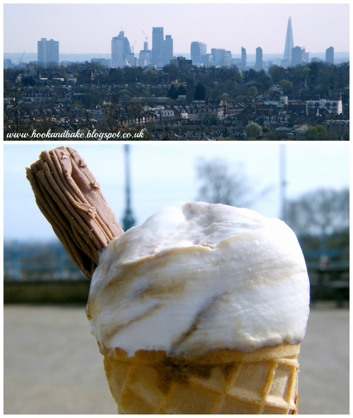 We couldn't resist purchasing an ice-cream from the gorgeous pastel coloured converted London Cab outside the Ally Pally. We sat and enjoyed the sunshine and the view over the city awhile before heading off to Olympia.